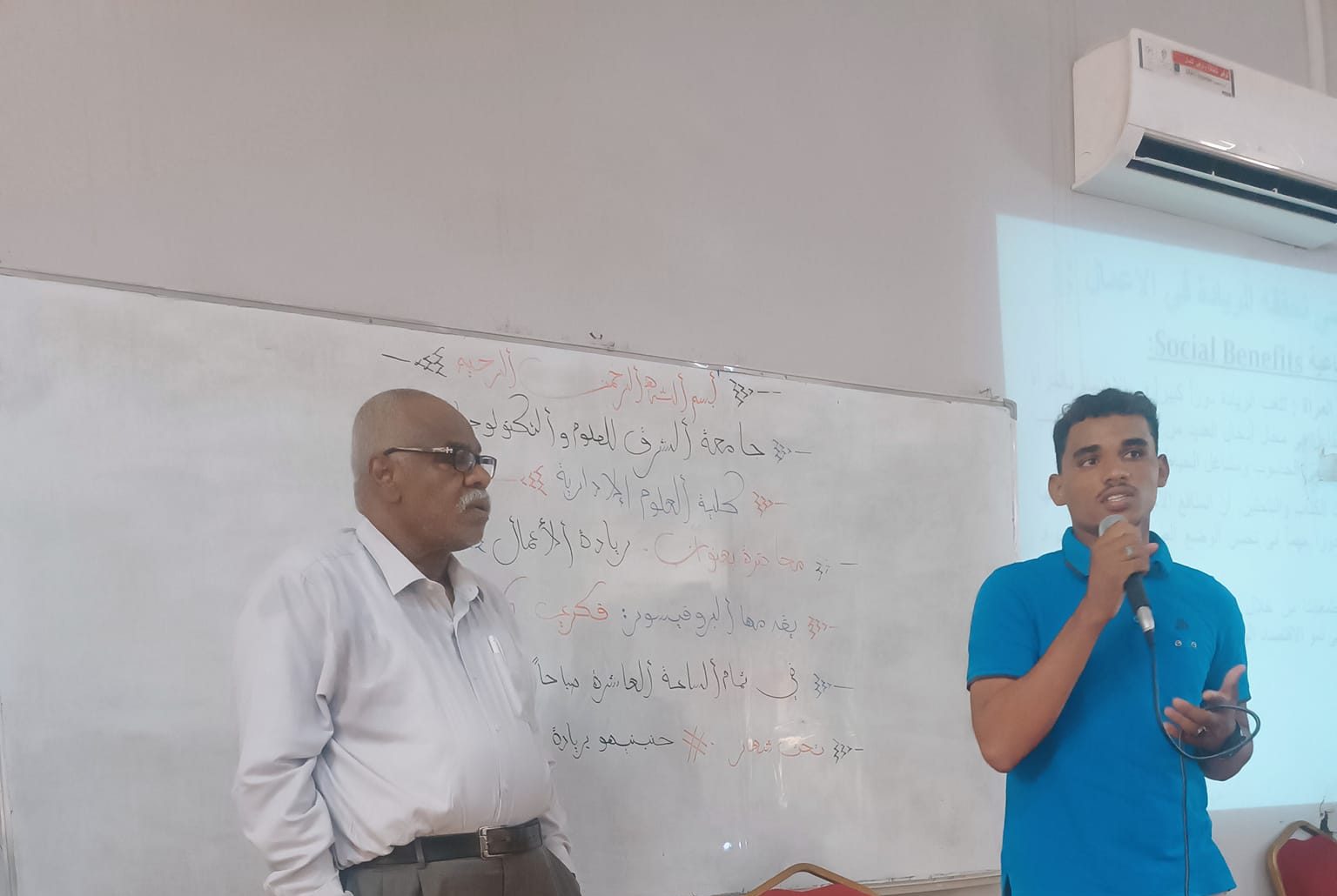 تحت إشراف دكتورة سوزان عبدالله عميد كلية العلوم الاداريه بجامعة الشرق للعلوم والتكنولوجيا إقيمت اليوم محاضرة في ريادة الأعمال قدمها البروفيسور فكري كباشي أستاذ إدارة