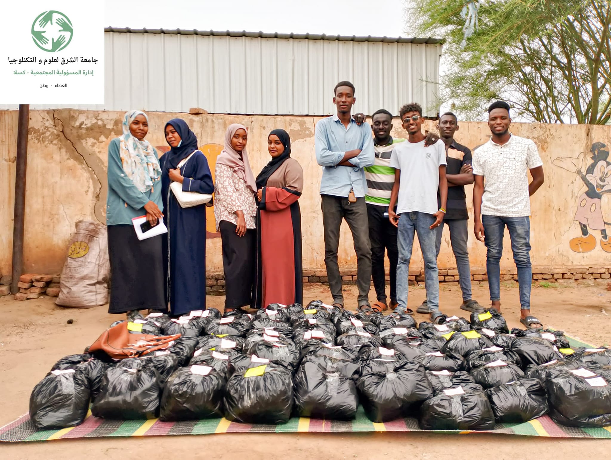 ضمن جهودها لدعم النازحين في ولاية كسلا قامت إدارة المسؤولية المجتمعية بجامعة الشرق للعلوم والتكنولوجيا بمبادرة وإعداد وجبة غداء وتوزيعها في وزارة الزراعه للنازحين الموجودين