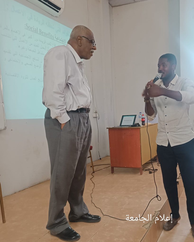Under the supervision of Dr. Suzan Abdullah, Dean of the Faculty of Administrative Sciences at Alsharq University of Science and Technology, an entrepreneurship lecture was held today, delivered by Professor Fikri Kabashi, Professor of Business Administration at Nilein University, Faculty of Commerce. The lecture was attended by faculty members and students of administrative sciences at the university. Entrepreneurship involves planning, organizing, directing, and controlling—pillars of management that guide the journey to the top, fueled by genuine effort and ultimately, by God’s grace. Today’s lecture with Professor Fikri was marked by eloquence and profound content in the vast field of management. We look forward to meeting him again.